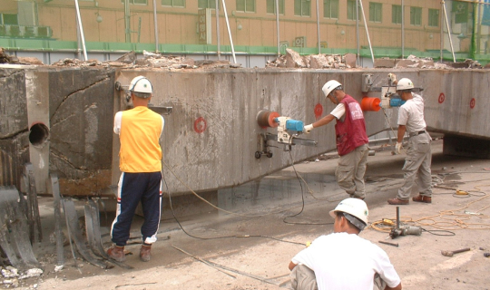 버스터 공법은 콘크리트 구조물에 코어 천공을 한 후, 버스터 헤드(Buster Head)를 삽입하여 내부에서 균열을 유도하는 방식의 해체 공법입니다. 무진동·무소음·무분진으로 콘크리트를 파쇄할 수 있어, 도심지나 주거지 인근의 민감한 구조물 철거에 적합합니다. 장비 구성 유압 유니트 고압을 발생시키는 장치 버스터 헤드 볼을 돌출시켜 콘크리트에 균열 유도 유압호스, 압력판 등